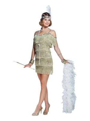 The 1920s are best represented by The Great Gatsby and other great 20s musicals. Decadent parties filled with Prohibition-era alcohol and music for a society that had seen its end with the War and felt the end of the Great Depression. Women had bobbed hair styles and wore sequined fashion gowns that flowed just below their knees. The 1920's dancing was inspired and the jazz was amazing. There is no wonder as to why this era makes for a great 20s costumes party. Of course, you may not want to cut your hair to fit the flapper hair style, but that’s why there are great 20s fashion wigs. Getting decked out in 20's costumes, or 20s dresses that come from the 1920s era is quite an experience and can provide a feeling like no other era. We have many cute styles of 20s outfits and flapper costumes. Check out our great selection of 1920s’ fashion, 20s clothes, and 20s dresses.